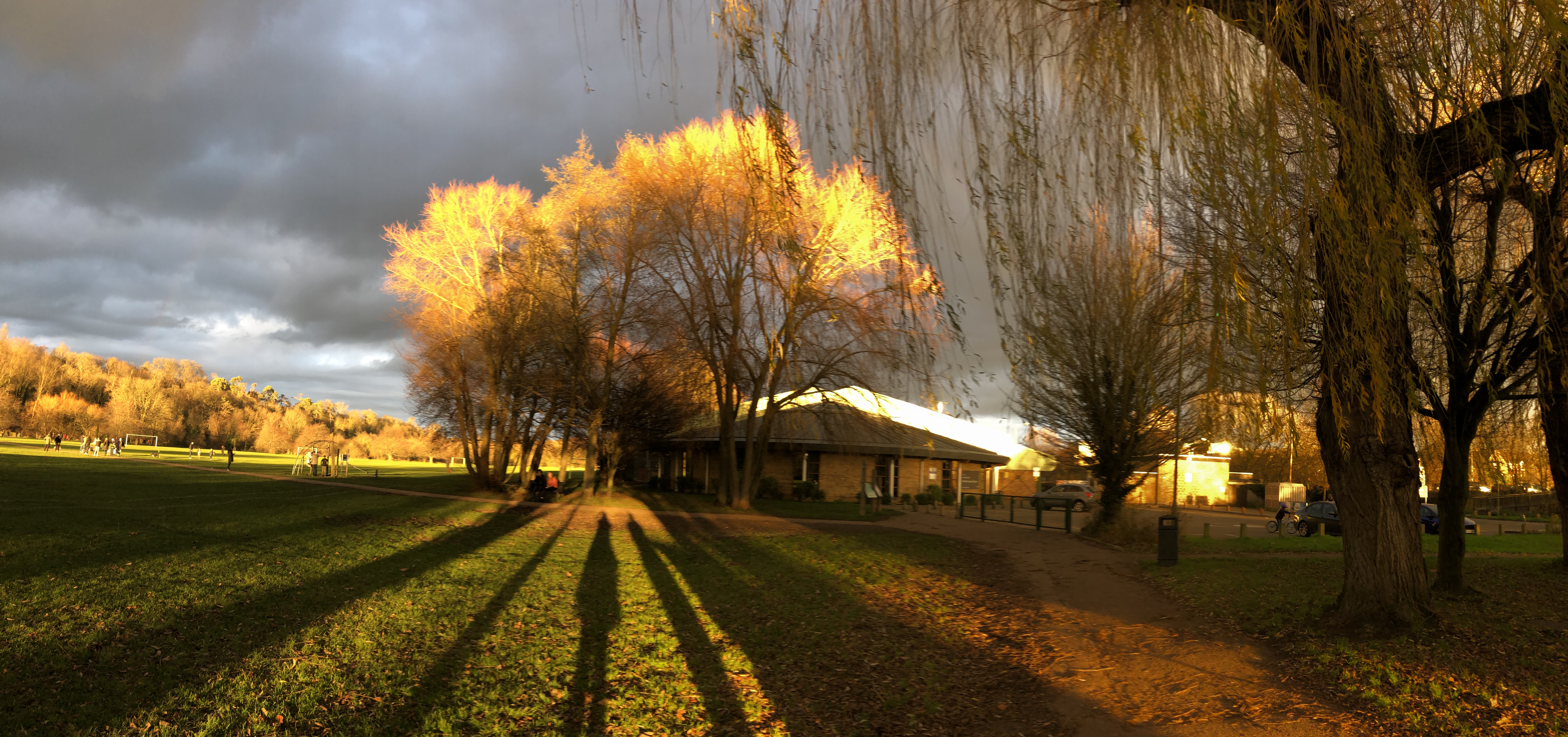 I experienced the most amazing skies on new years day, walking back from Hertford to Dicker Mill, where my studio is located. The sky was grey/black and the sun shone on the tree tops making them seemingly ablaze.