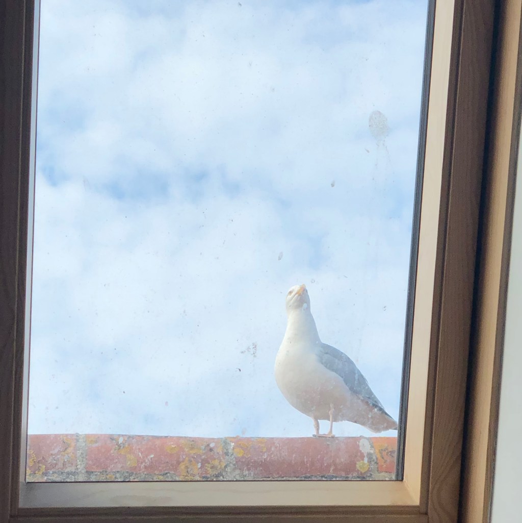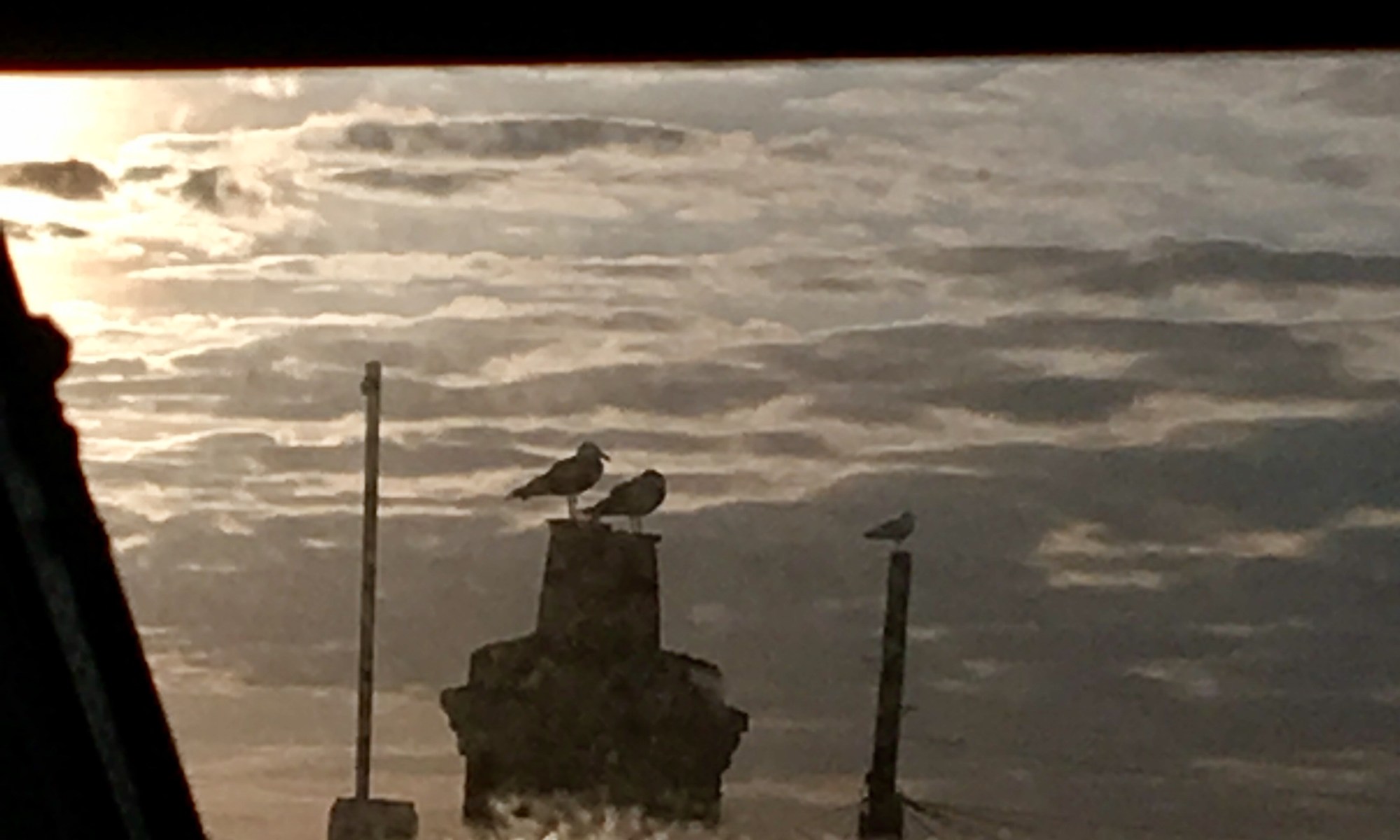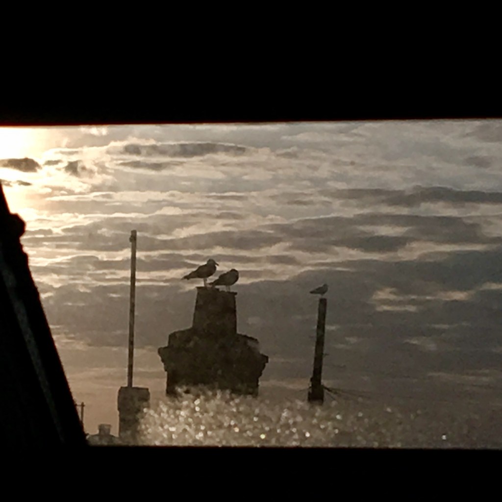 Seagulls sitting on the highest perch they can find, waiting to swoop on their prey.. seen following fishing boats to scavenge the scraps thrown overboard..snatching a morsel from unaware hands……top and tail