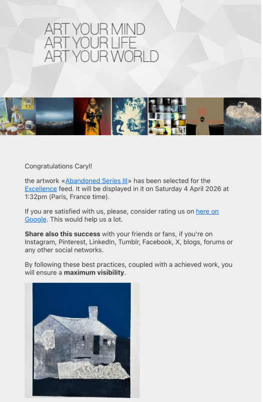 I have recently been selected in three categories to promote my work via their social media platforms.